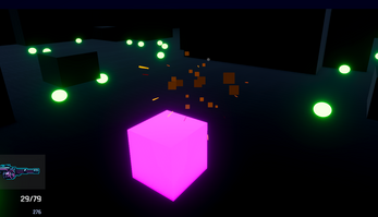 You enter a dark geometric arena, where waves of enemies constantly close in. Simple shapes become deadly threats as the battlefield fills with projectiles, enemies and passive squares. Your only object is survival.